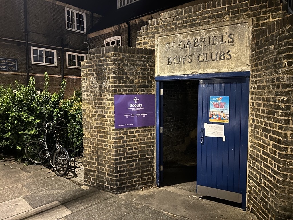 We meet at St Gabriel’s Church Halls, Glasgow Terrace, in Churchill Gardens. The scout group has met in these halls since its founding in 1910, and we are proud to be sponsored by St Gabriel’s Church.