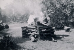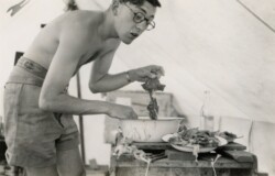Len Warner prepares a meaty supper at the group's annual summer camp on the Isle of Wight.