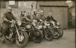 Inspired by the 1st Westminster, a group of scouts start a motorcycle gang - called the Saints. The newly introduced crash helmets were marked with a blue ring around the top. Courtesy of Eifion Harris.