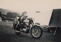 Motorcycles proved a useful way to get to camp - although this young scout may struggle to reach the clutch! Courtesy of Eifion Harris.