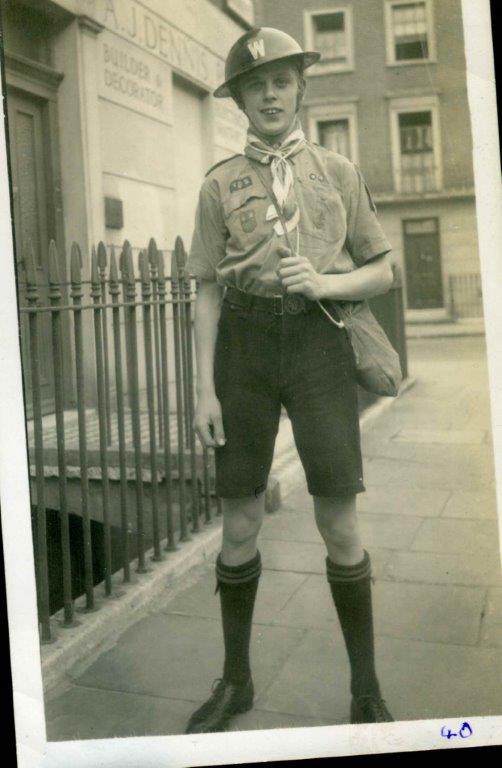 Ted Dennis, a scout at the 16th, as a Messenger Warden during the war. Courtesy of Dave Dennis.
