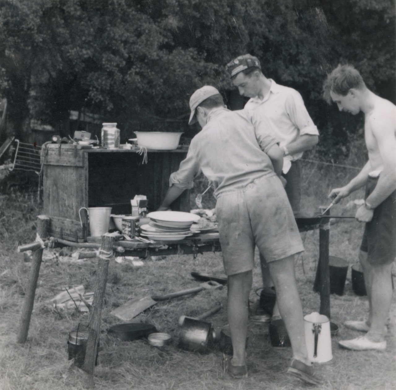 Len Warner prepares a meaty supper at the group's annual summer camp on the Isle of Wight.